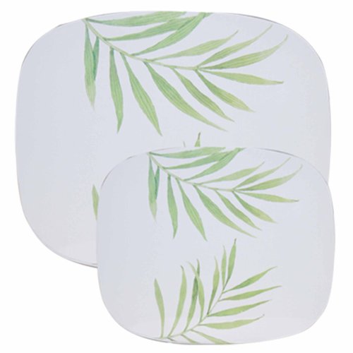 Corelle Coordinates, Bamboo Leaf pattern is displayed on this set of two counter matt set. Each matt is made of tin with a cardboard backing that will allow you to protect your counters or table from hot pans.Corelle Coordinates Counter Mats, Set of 2, Bamboo Leaf